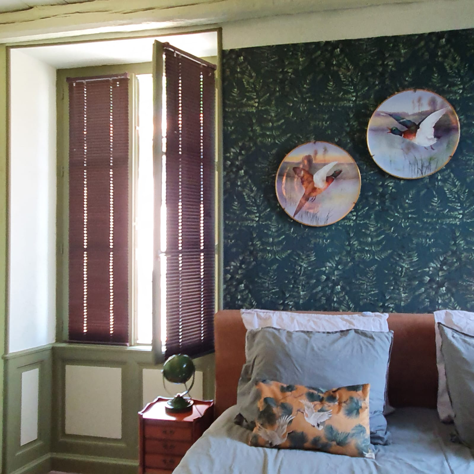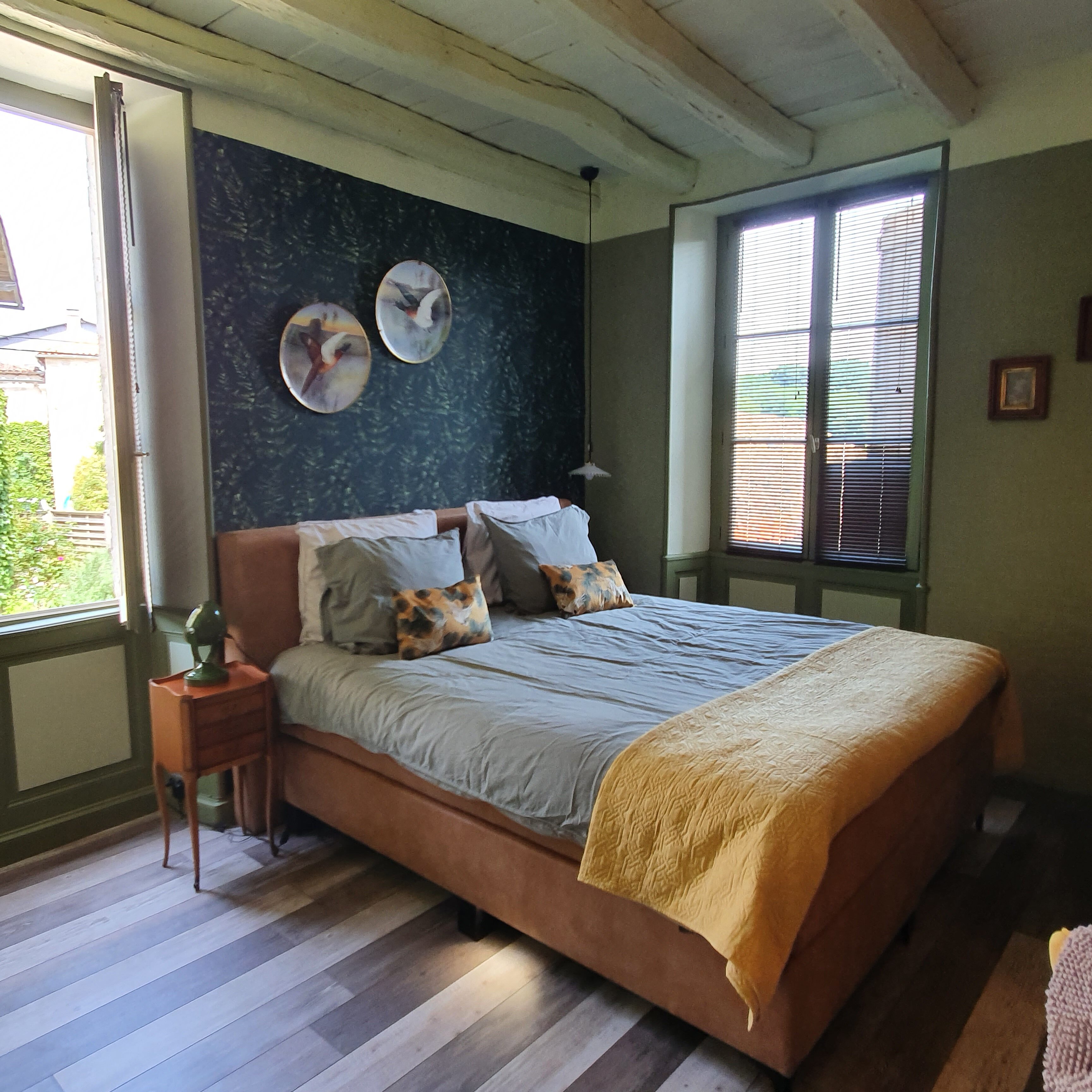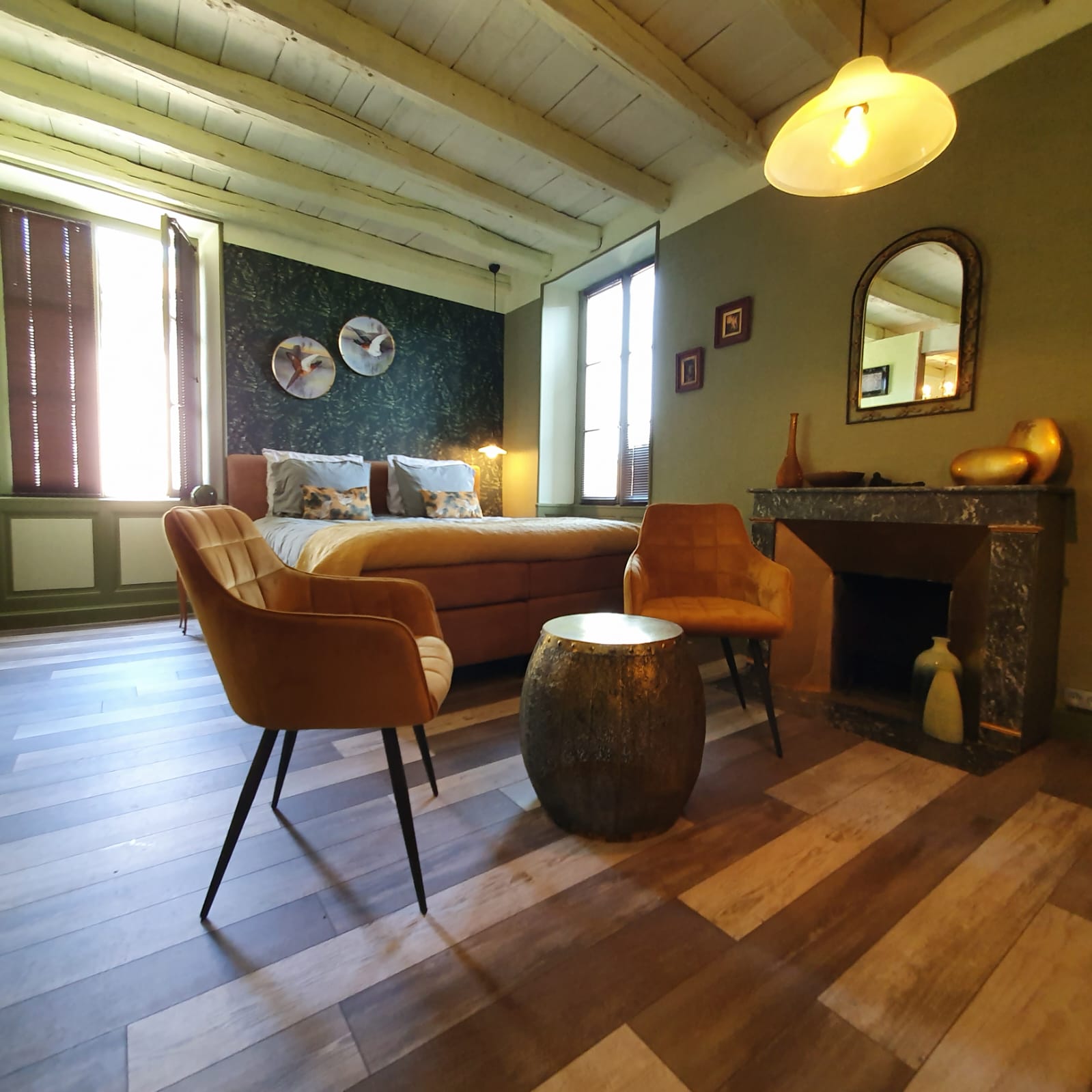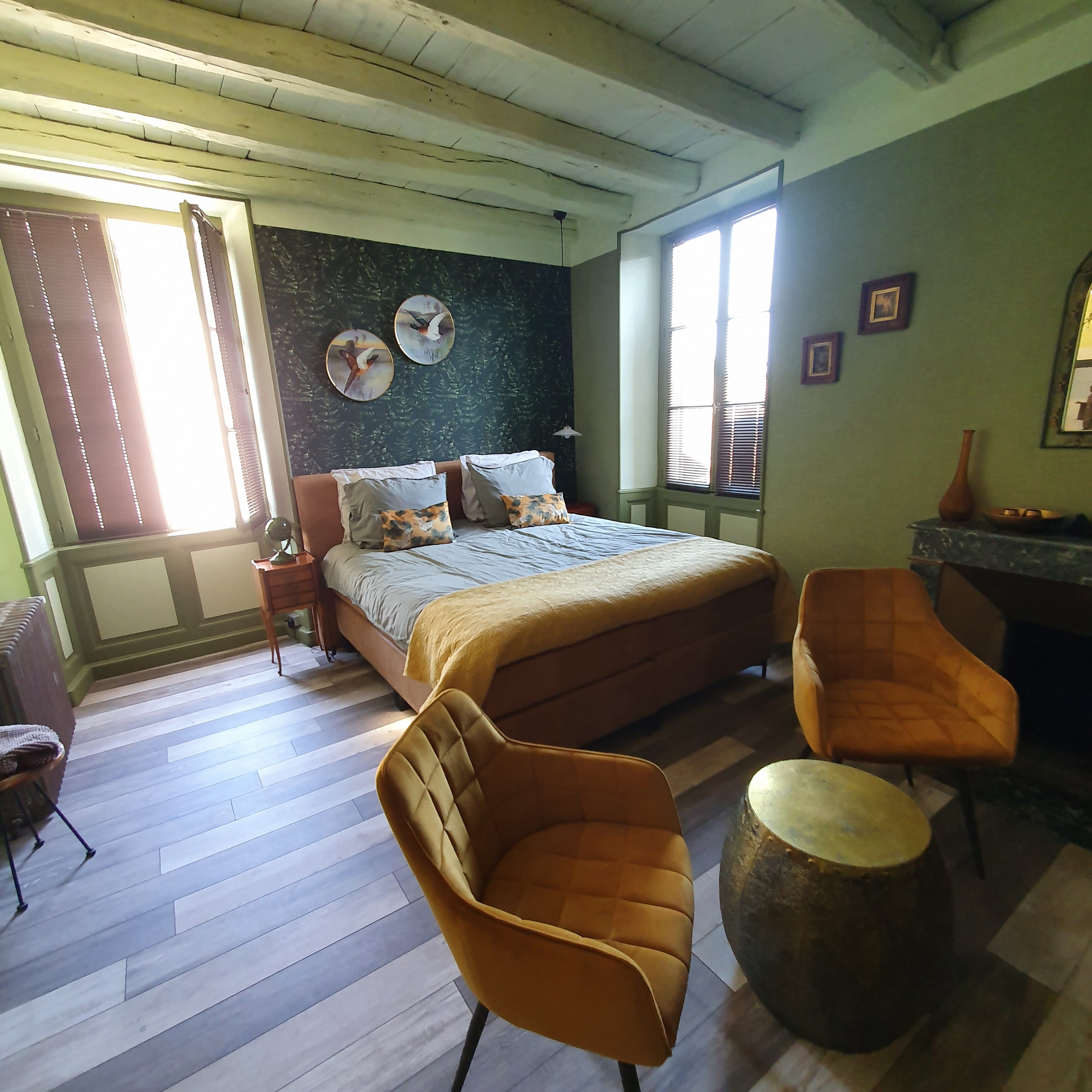 Deze stijlvol ingerichte en net gerenoveerde kamer met sfeervolle oude sierhaard is gelegen op de eerste verdieping aan de voorkant van Maison Fossemagne.