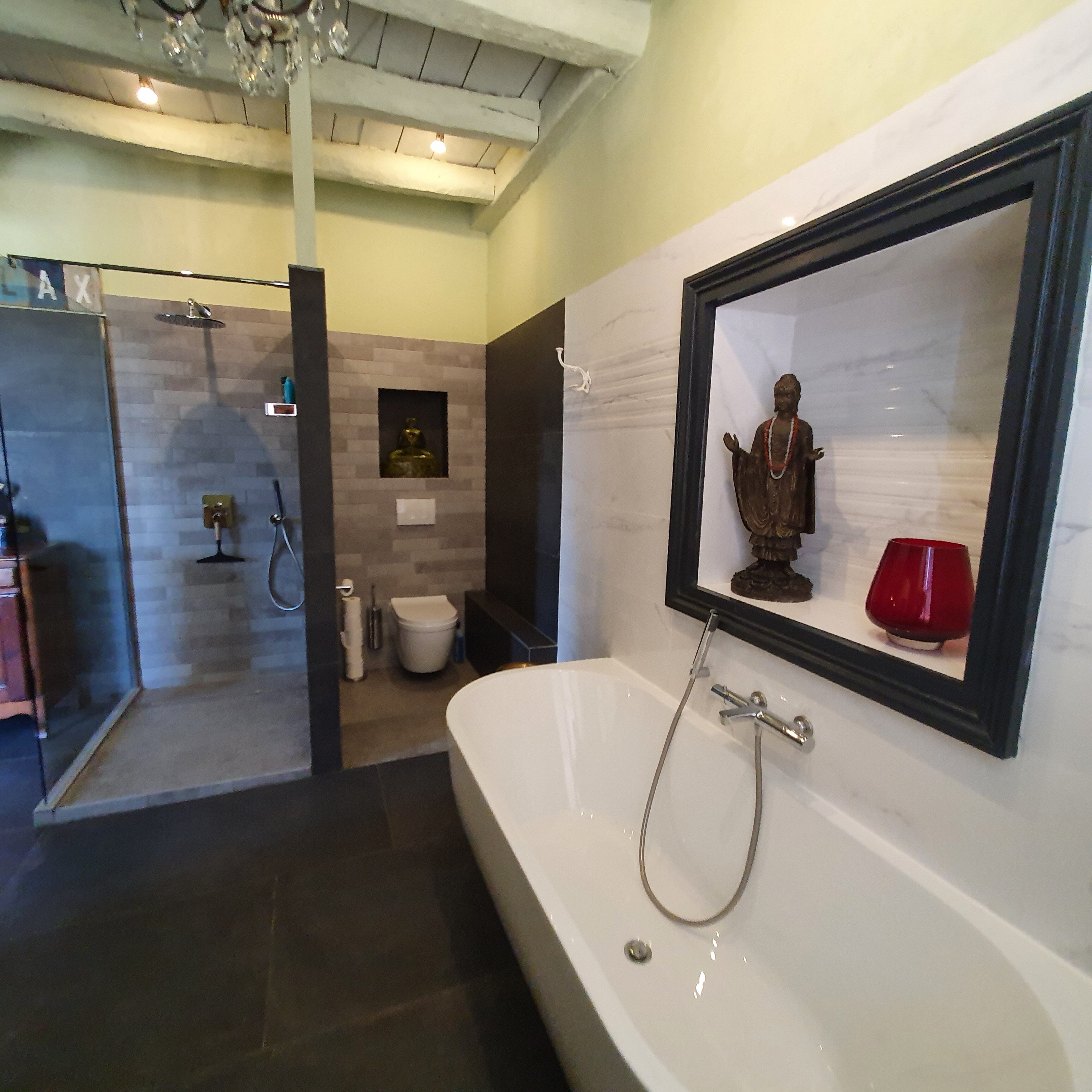 De kamer is lekker ruim met zijn 24 m2 en heeft een moderne ensuite badkamer met bad en een apart toilet en douche.