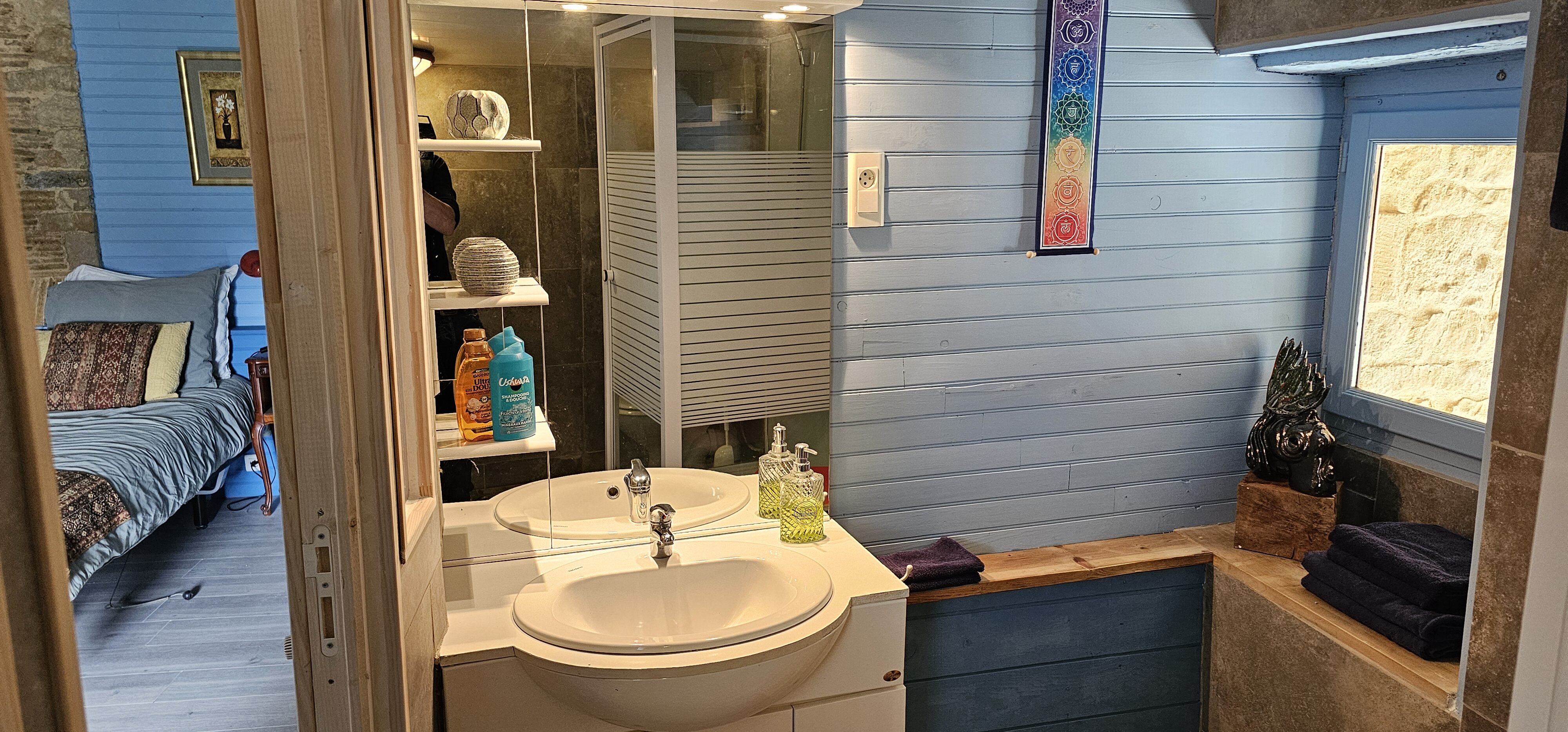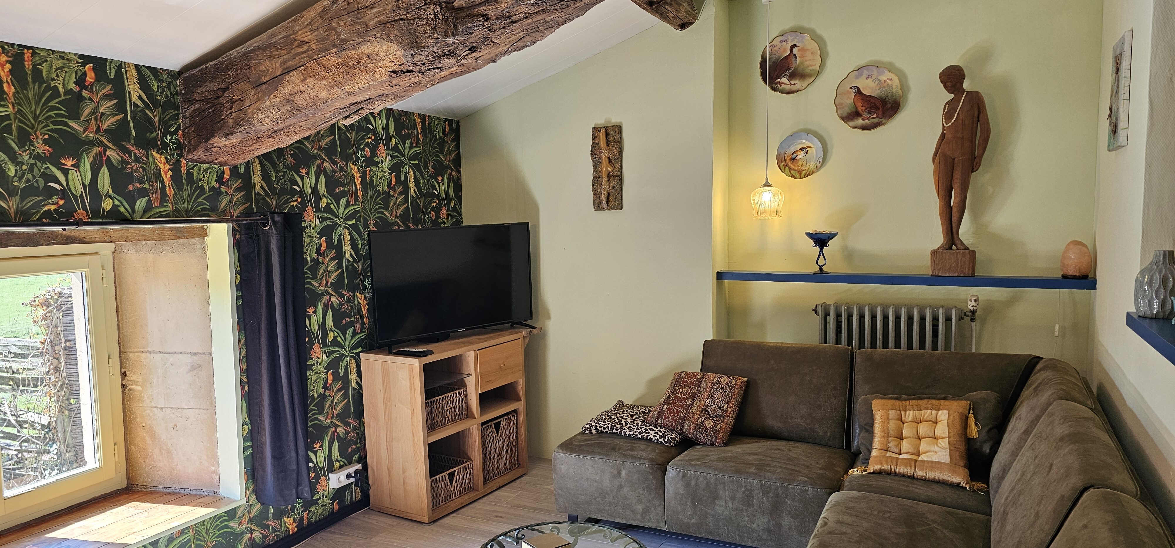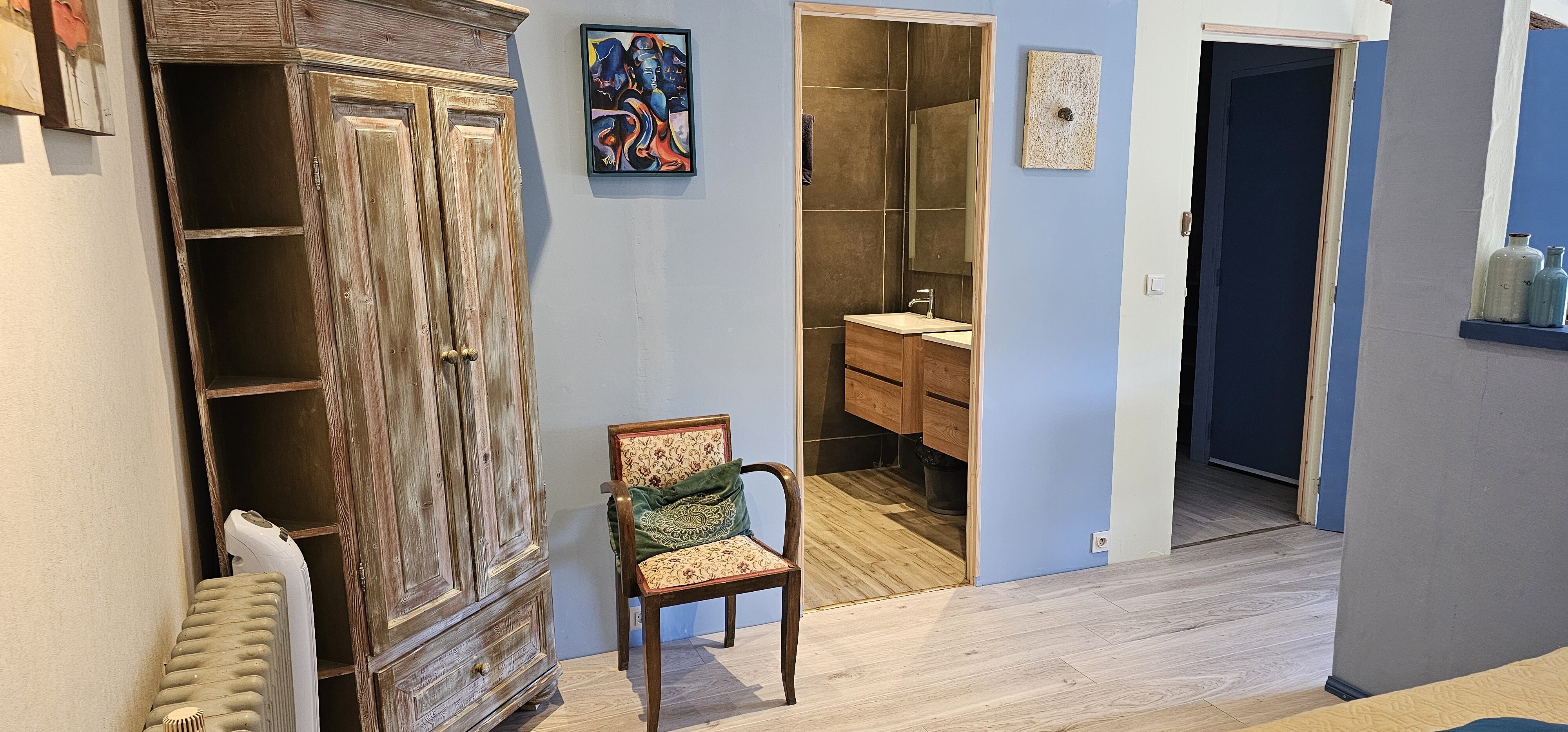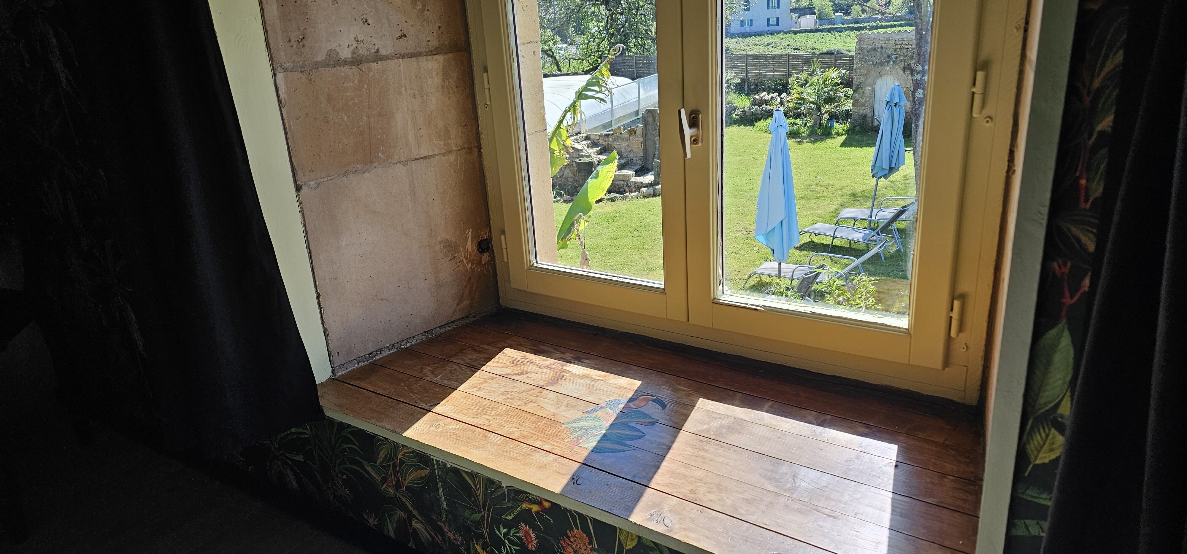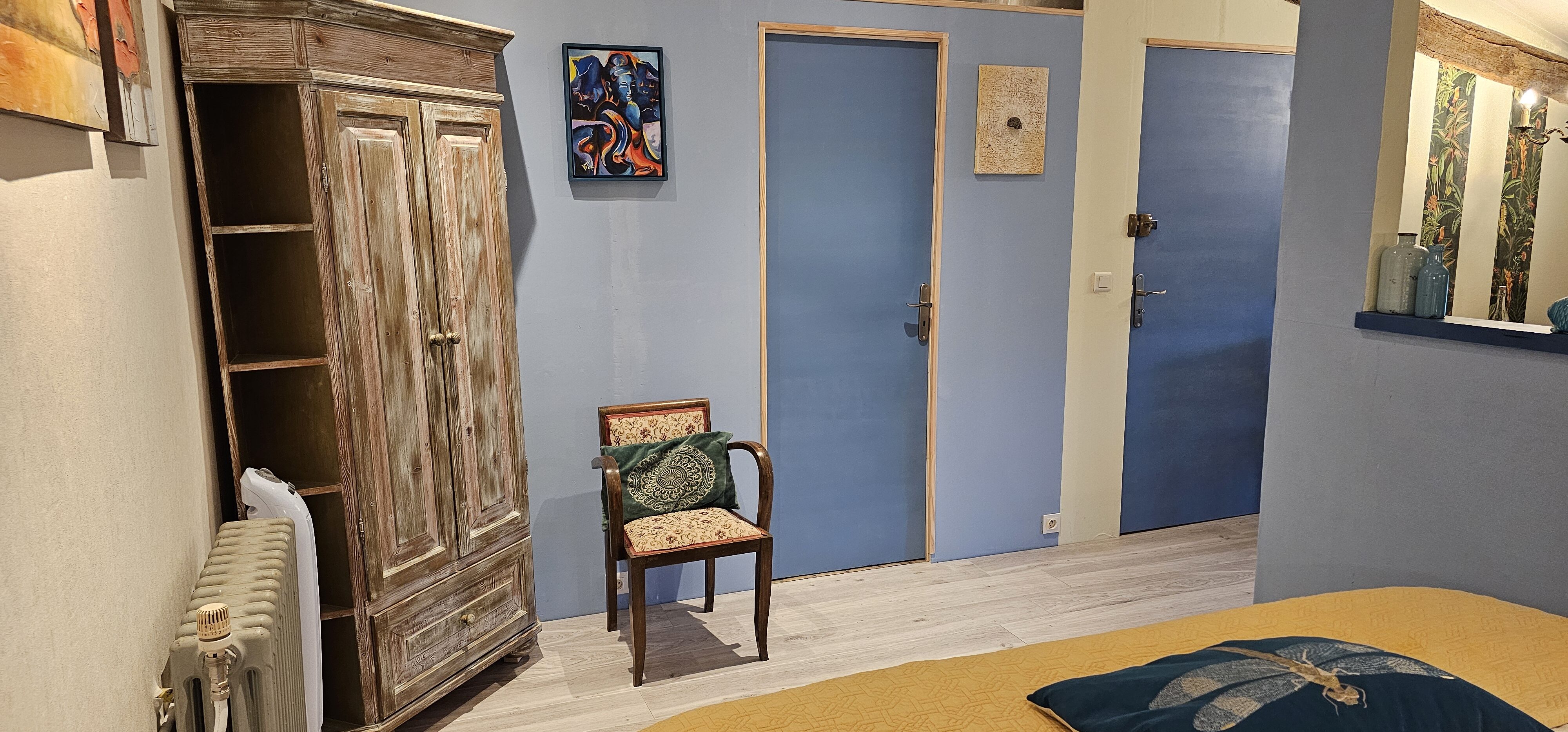 Deze sfeervol ingerichte Familie kamer is gelegen op de eerste verdieping aan de achterkant van Maison Fossemagne.