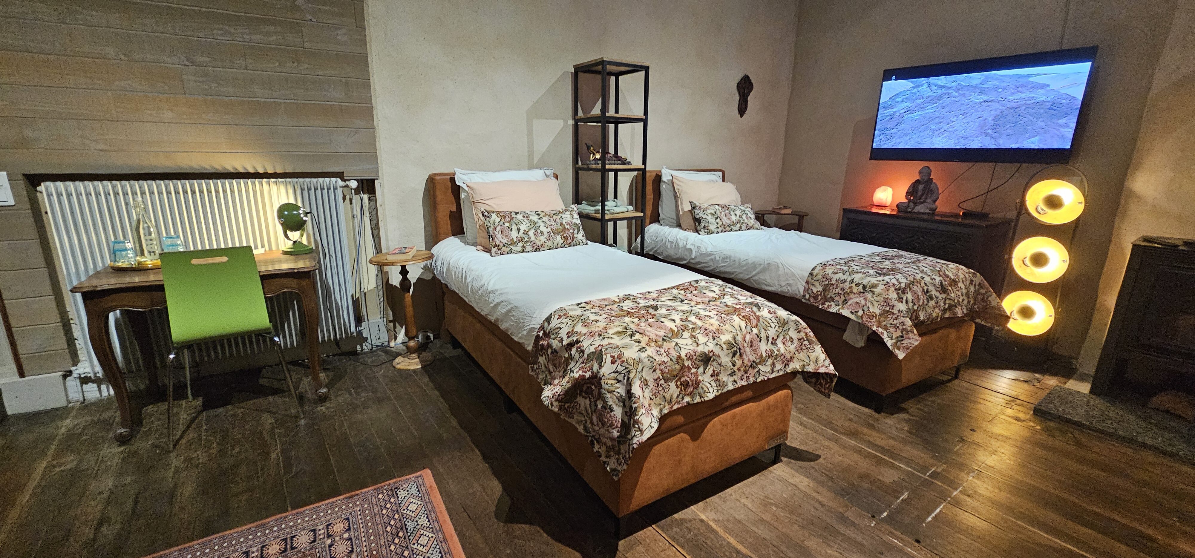 From the room you look out from 3 large windows over an attractive French alley and beautiful monumental houses in Melle.